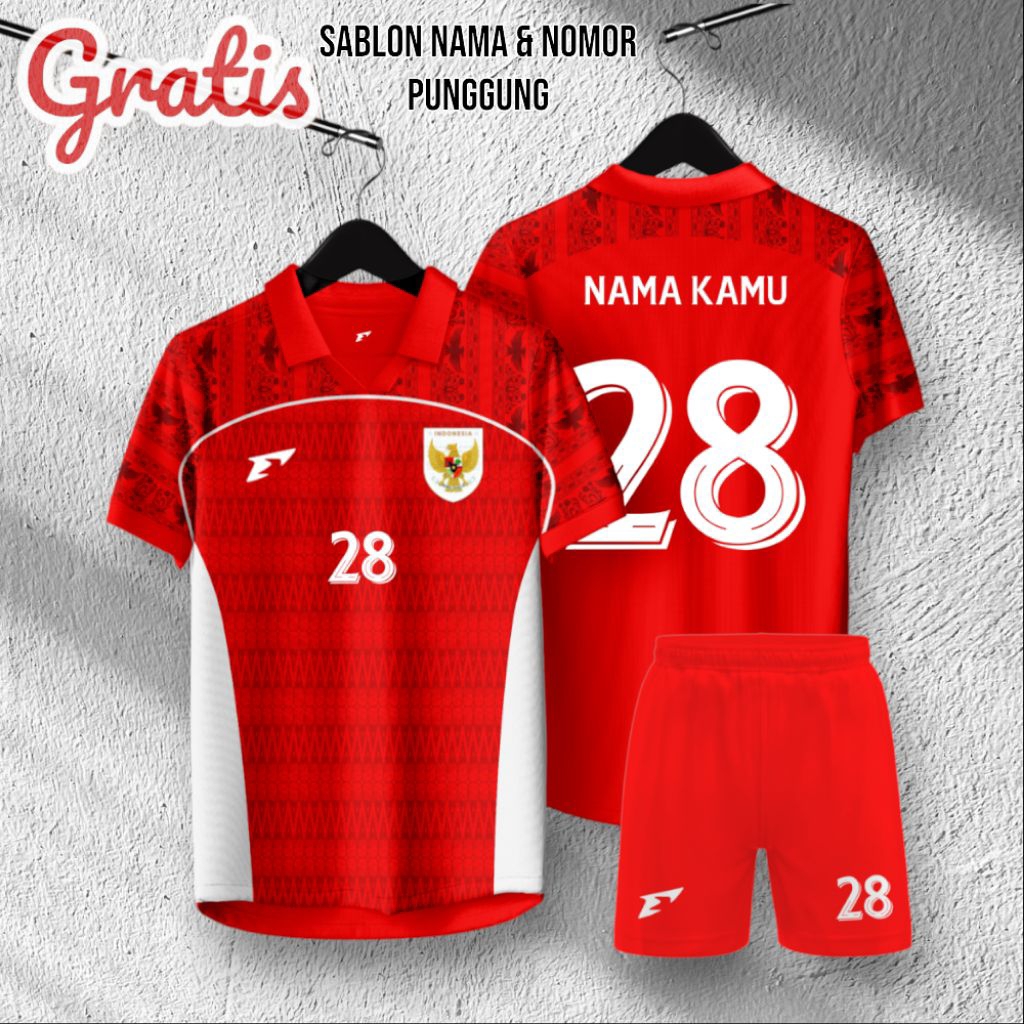 Jersey Timnas Indonesia Terbaru (Gratis Sablon Nama & Nomor punggung) Baju Olahraga Unisex Dewasa