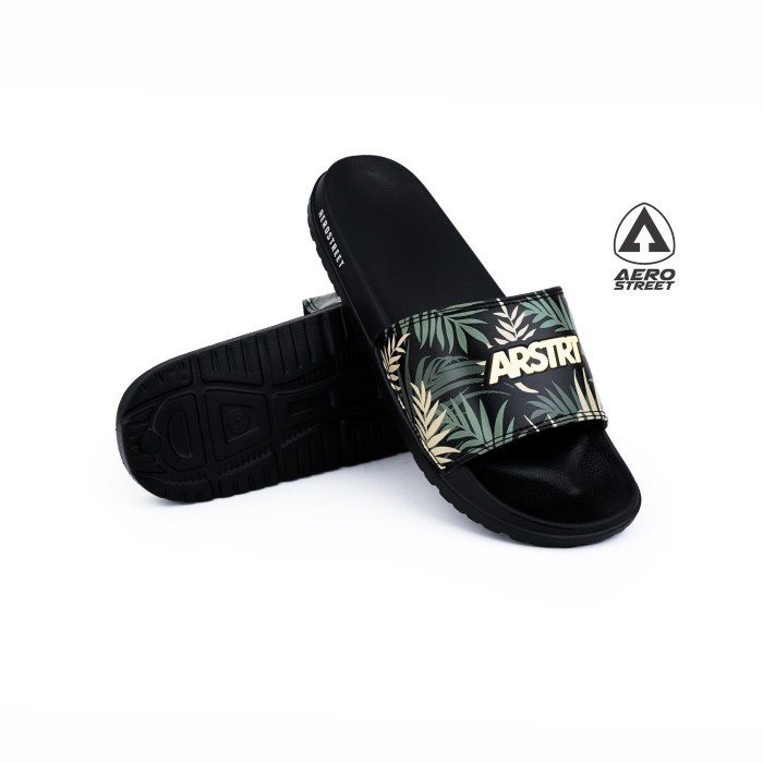 Aerostreet 39-44 Alvaro Hitam Hijau - Sandal Selop Pria Wanita 22AAA0