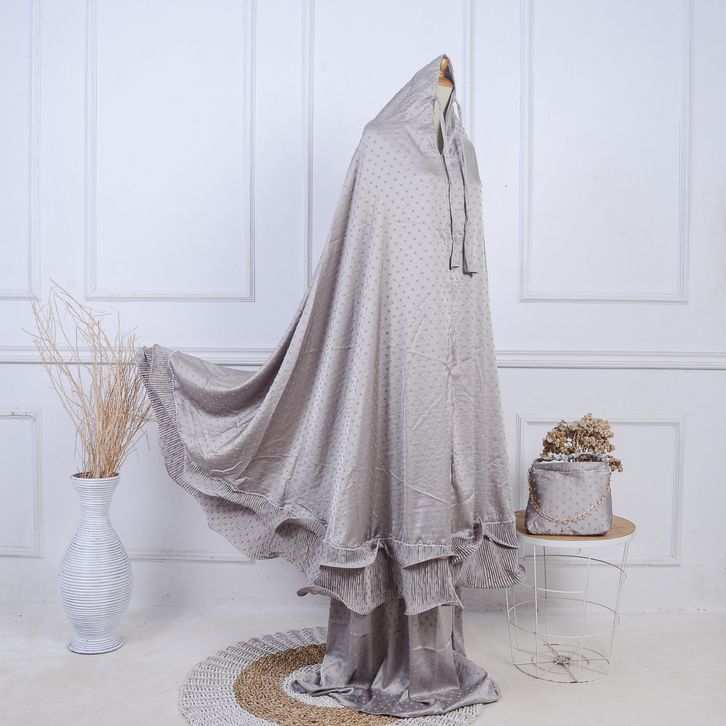 Mukena Mewah Murah Dewasa 2in1 Premium Silk Uragiri Gray