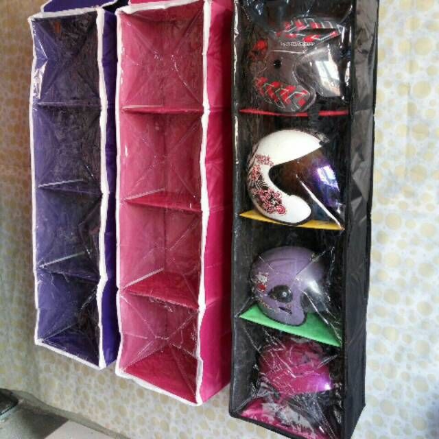 TERMURAH Rak Helm 4 tingkat alas pakai triplek kokoh plastik tebal muat 4 helm bisa digunakan lemari baju