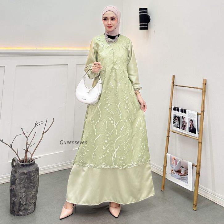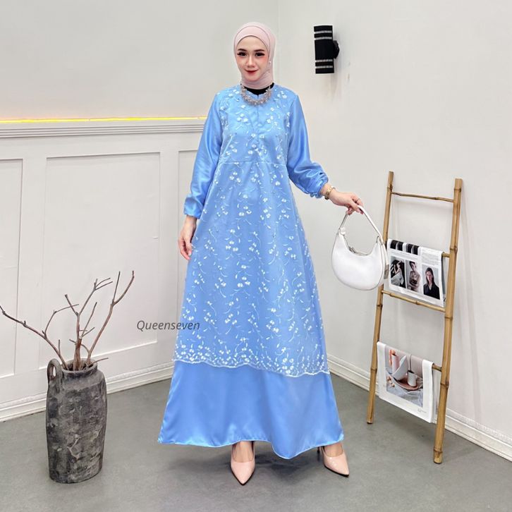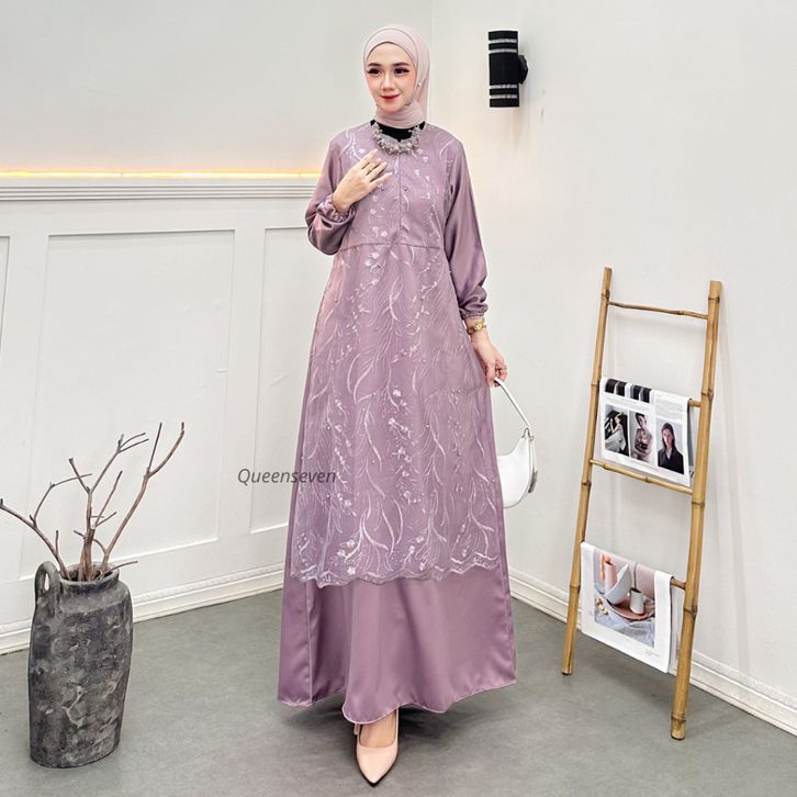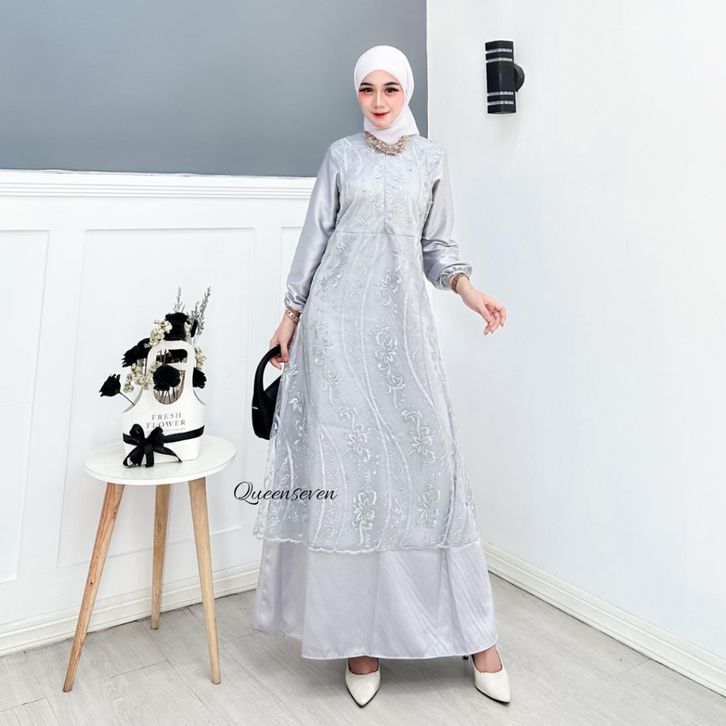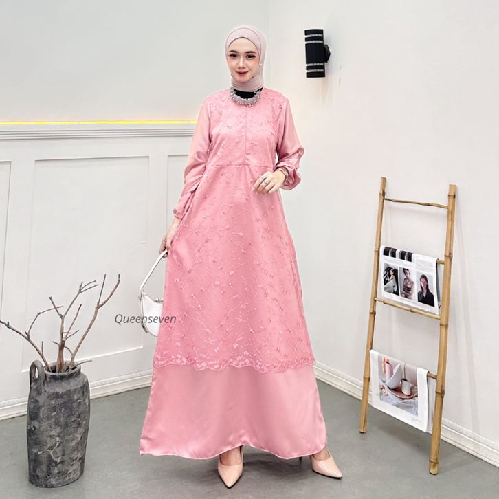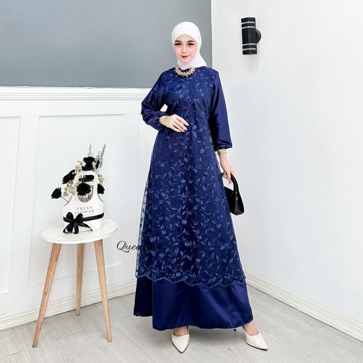 gamis wanita terbaru almira dress busui brukat mutiara tile gamis pesta mewah elegan kekinian