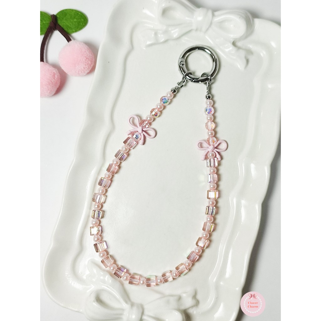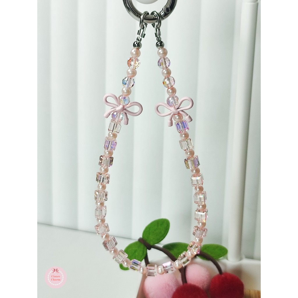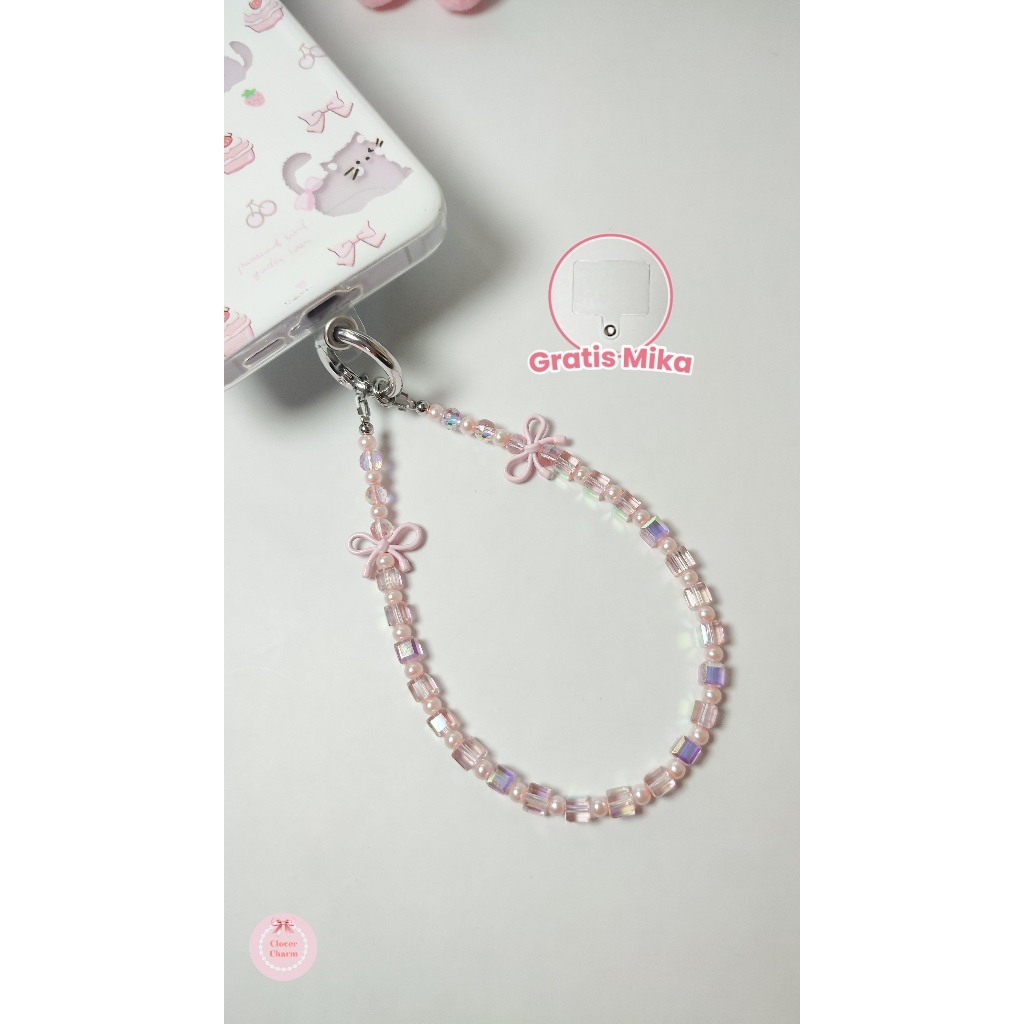 Phone Strap Pink Coquette Crystal / Gantungan HP Premium Pita Pink