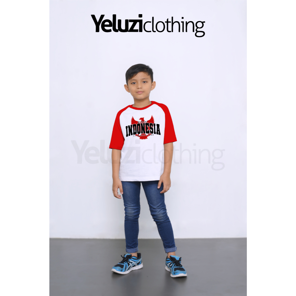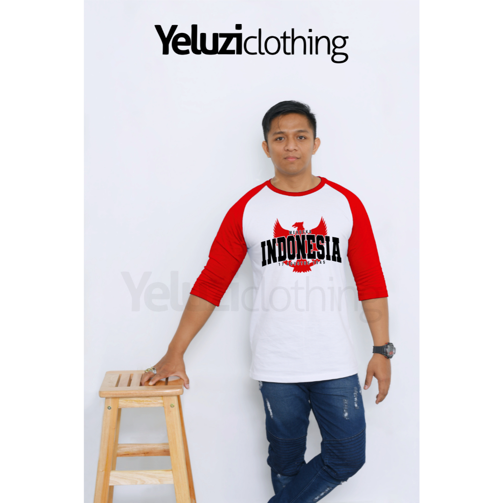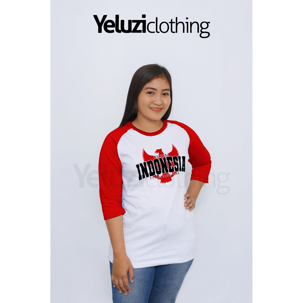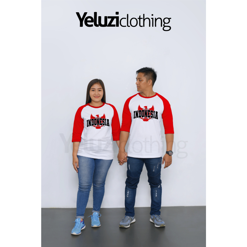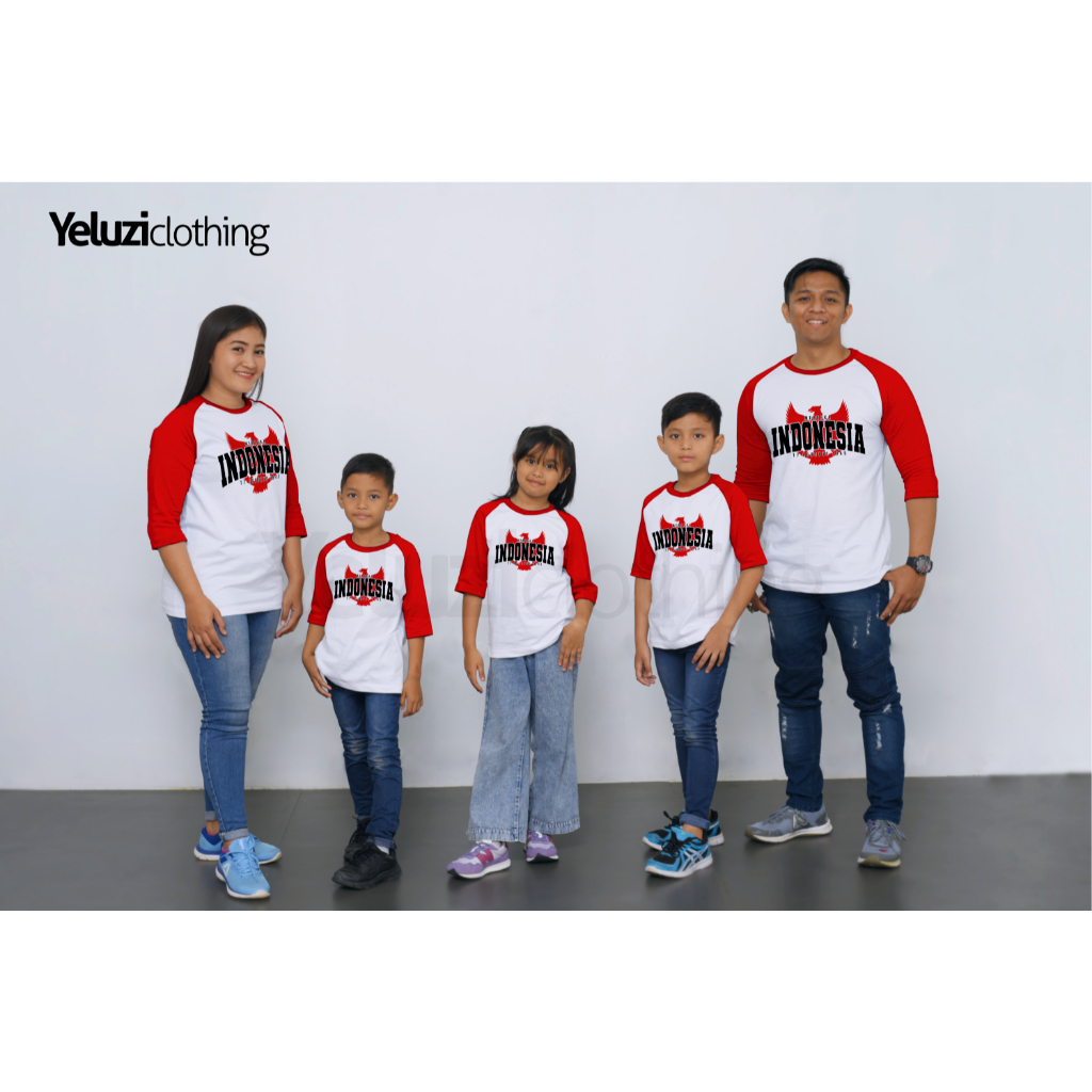BAJU COUPLE KELUARGA KAOS RAGLAN MERAH PUTIH SARIMBIT KEMERDEKAAN INDONESIA BAJU AGUSTUSAN - GARUDA - KATUN COMBED 24S - YELUZI