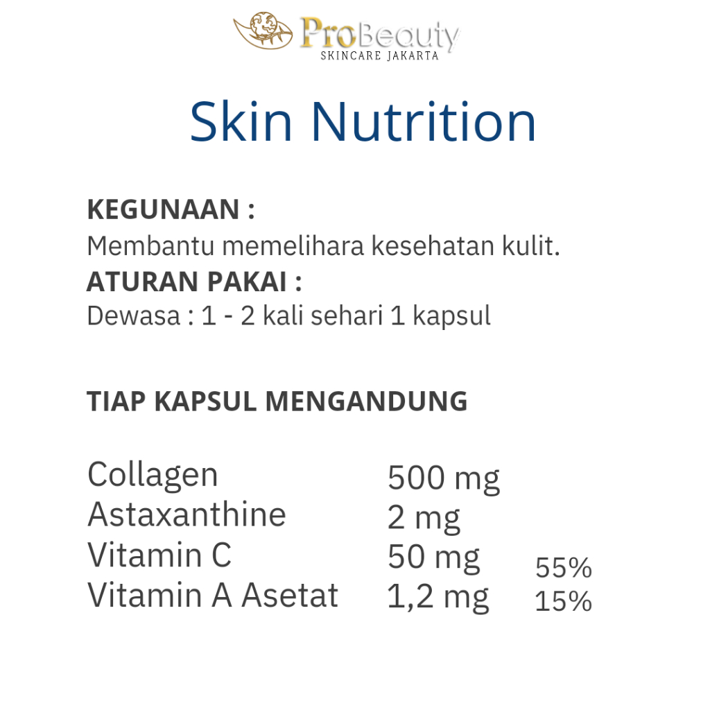 Probeauty Skin Nutrition Collagen Kapsul Pemutih Badan Dan Wajah Vitamin Kulit Suplemen Kecantikan Kolagen Colagen Origi