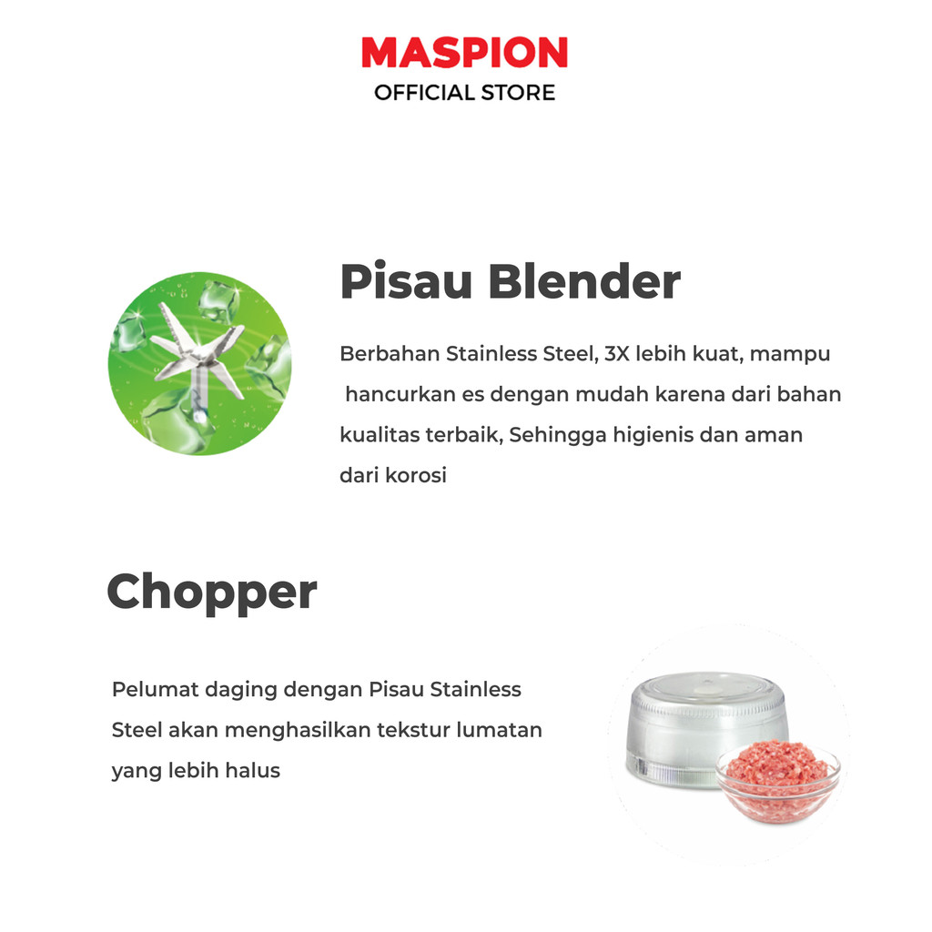 NEW ORIGINAL Maspion Pelumat Blender with Chopper 1.5 Liter MT-1212 MT 1212