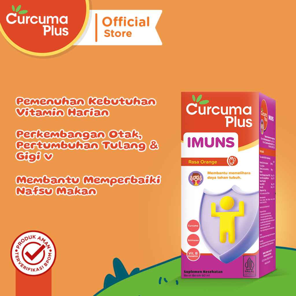 Curcuma Plus Imuns Sirup Multivitamin Membantu Memelihara Daya Tahan Tubuh Anak Rasa Jeruk 60ml