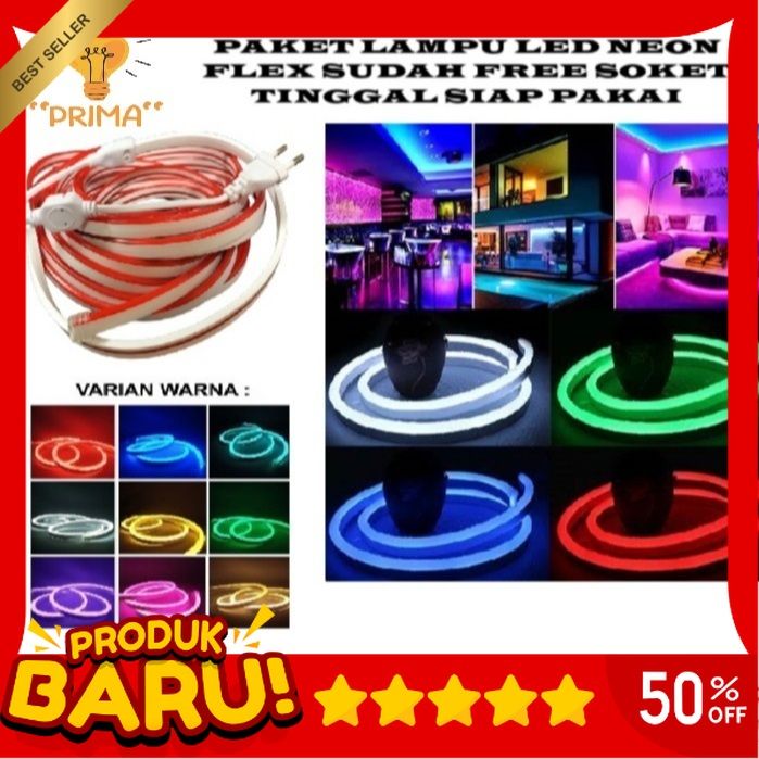 LAMPU AGUSTUSAN Paket Lampu LED Neon Flexible AC 220V1m 2m 3m 4m 5m ( sudah free soket + tutup )