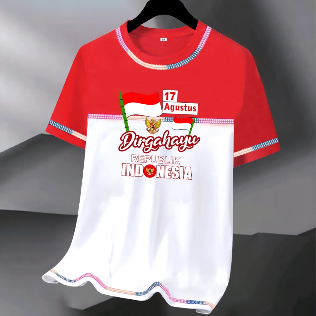 KAOS KEMERDEKAAN 17 AGUSTUS DEWASA DAN BAJU ANAK UNISEX KOMBINASI MERAH PUTIH