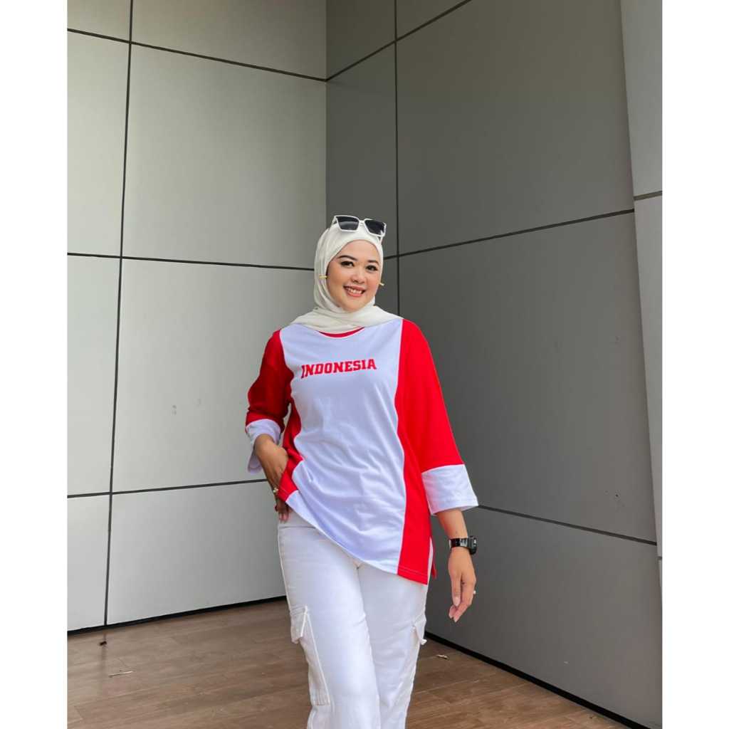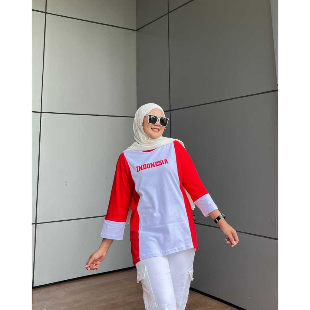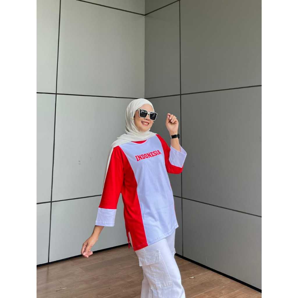 ALDIRA KAOS OVERSIZE WANITA EDISI KEMERDEKAAN INDONESIA MERAH PUTIH TERBARU / KAOS AGUSTUSAN