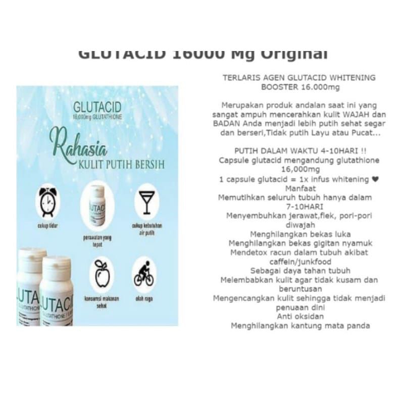 promo glutid glutathione 16,000mg whitening booster original bisa dites pake air betadine isi 30 capsul