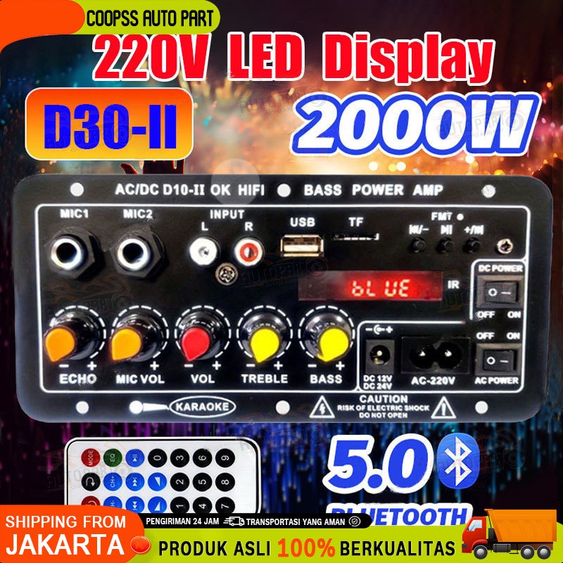[Mall] Amplifier board D30 Ⅱ D10 Ⅱ 2000W Tampilan digital Power amplifier board Untuk 8-12 Inci Speaker 220V-DC 12V-24V