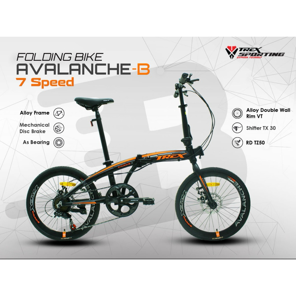 Sepeda Lipat Anak dan Dewasa Ukuran 20 Inch Trex Avalanche B 7Sp Frame Aloy