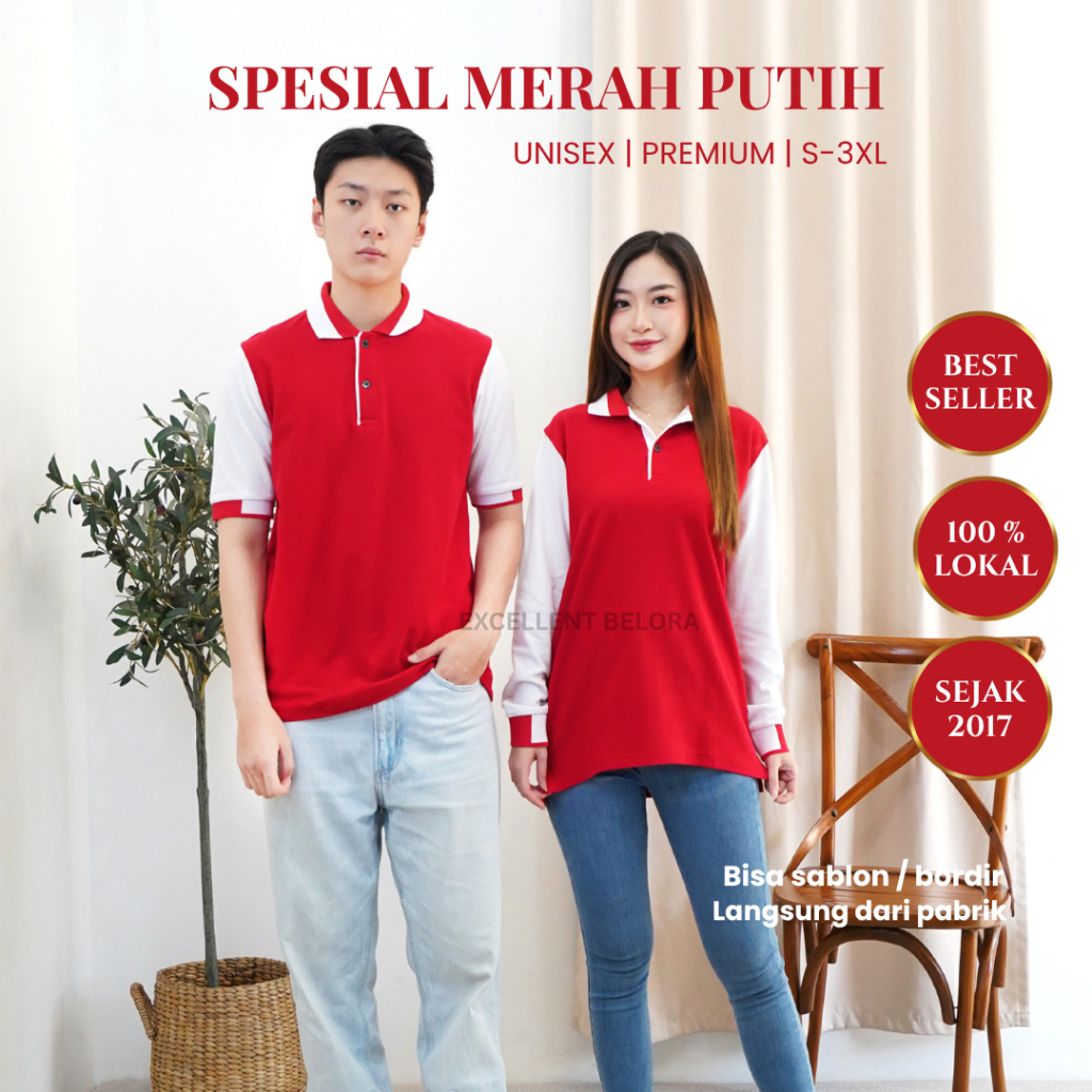 EXCELLENT BELORA KAOS MERAH PUTIH PRIA WANITA PREMIUM COTTON S M L XL XXL 3XL 4XL 5XL AGUSTUS ATASAN SERAGAM INDONESIA
