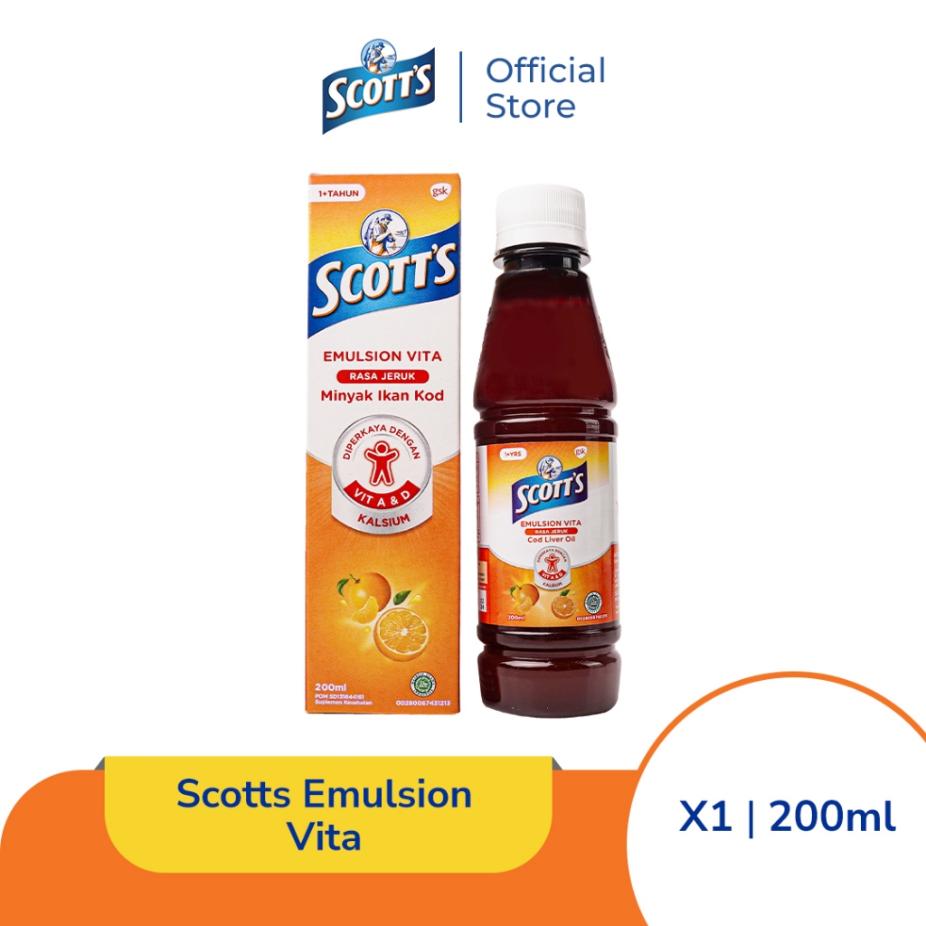 Scott's Vitamin Dengan Omega 3, Vitamin A Dan D + Kalsium Vita Rasa Jeruk 200ml