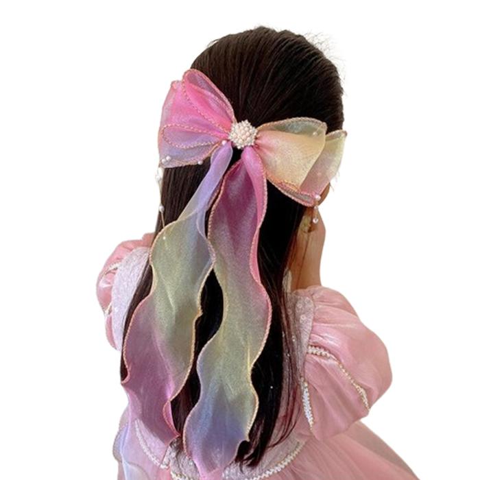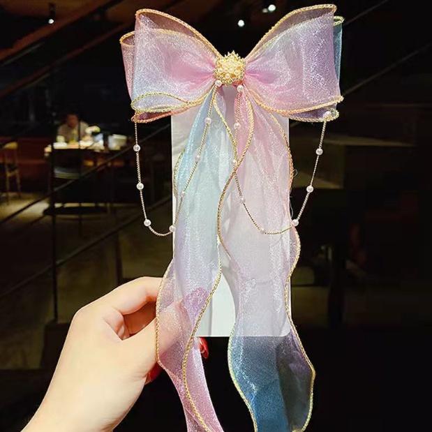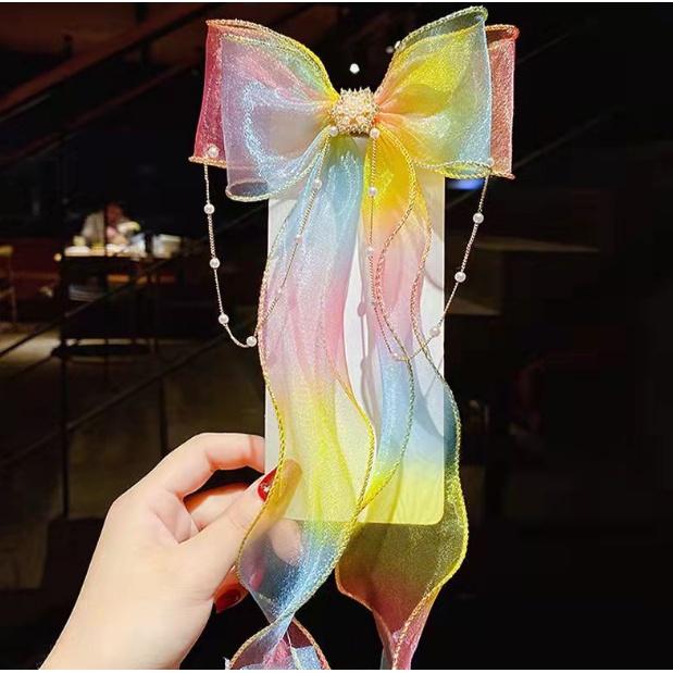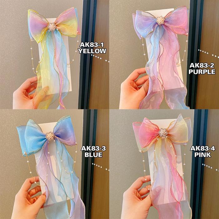 Minzo Jepit Rambut Wanita Korea Anak Perempuan Pita Panjang Warna Gradasi Lucu Fashion Aksesoris Rambut - AK83