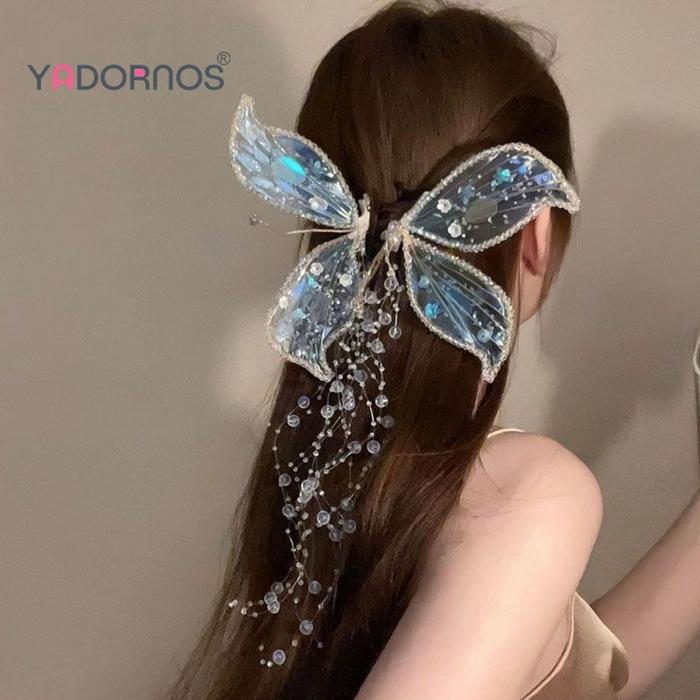 Jepit Rambut Kupu-Kupu Kristal Peri - Set Klip Sayap Kupu-kupu - Klip Putri Duyung - Jepit Rambut Rumbai Berkilau SA4
