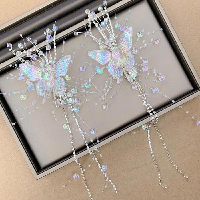 2 Pcs/Set Jepit Rambut Pengantin Kupu-Kupu Mutiara Kristal Hair Clip Aksesori Pengantin Perhiasan Klip Rambut Pengantin