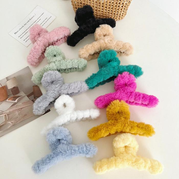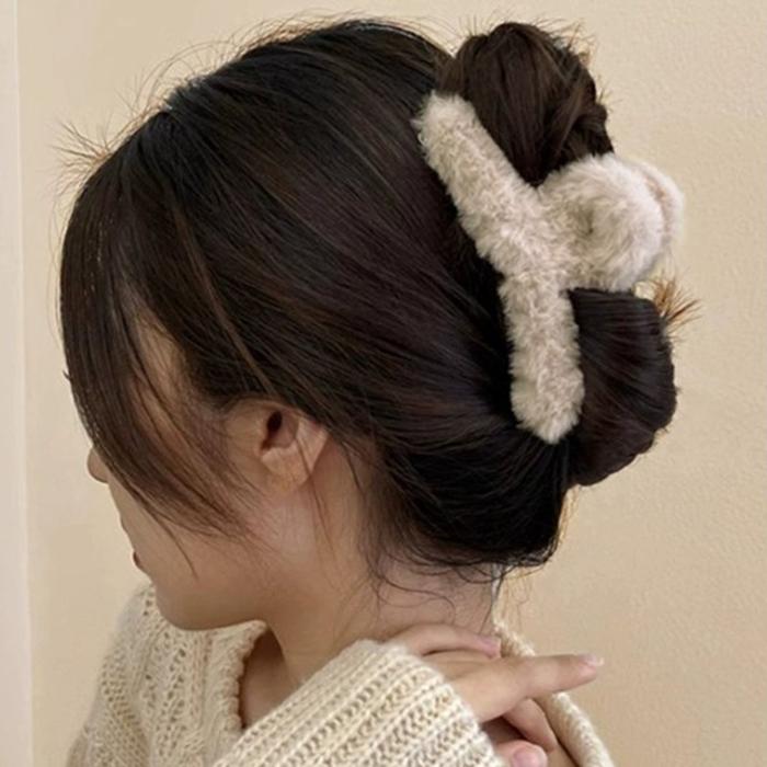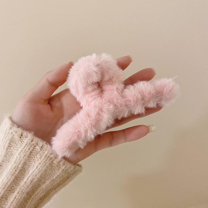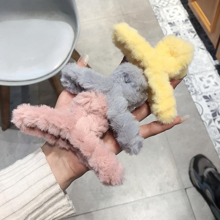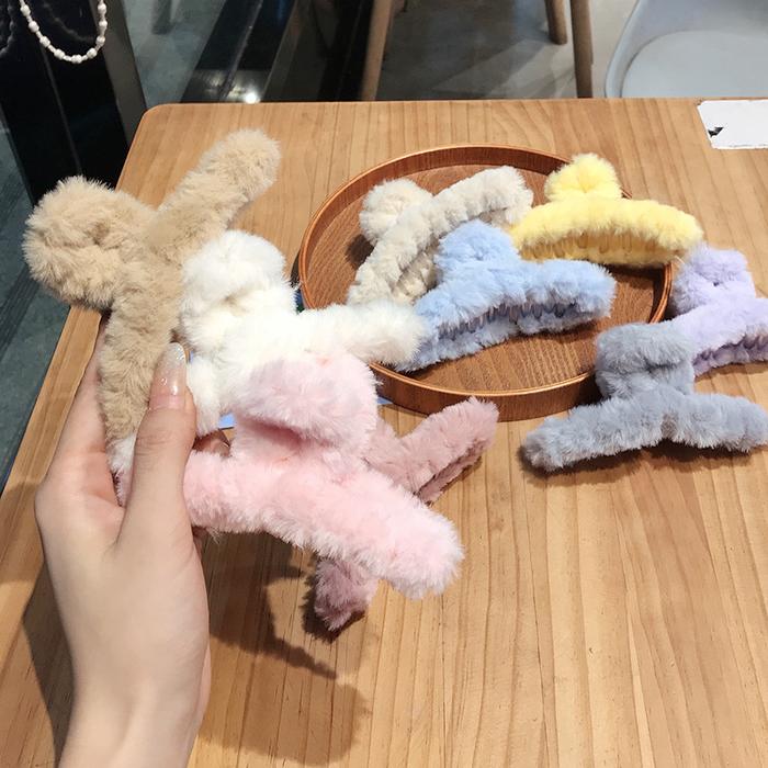 JP1466 Jepitan Rambut Bulu Korea Halus Jedai Wanita Bahan Bulu Lembut Jepit Rambut Silang Gaya Korea Warna Soft Asesoris
