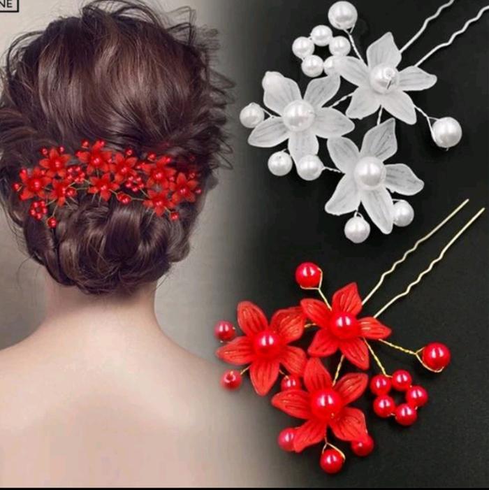 Hairpin Tusuk Konde Sanggul Satu Bunga Jepit Rambut Mutiara Bridal Hiasan Kepala Pernikahan Perhiasan Wanita Dan Anak