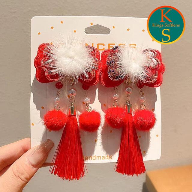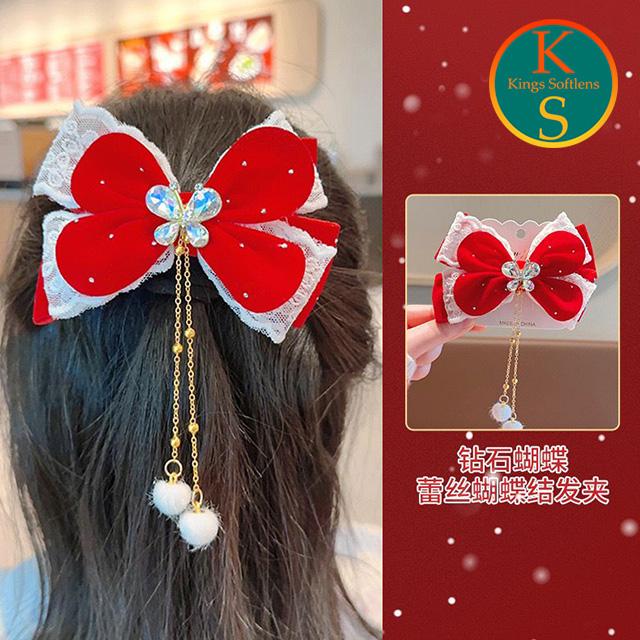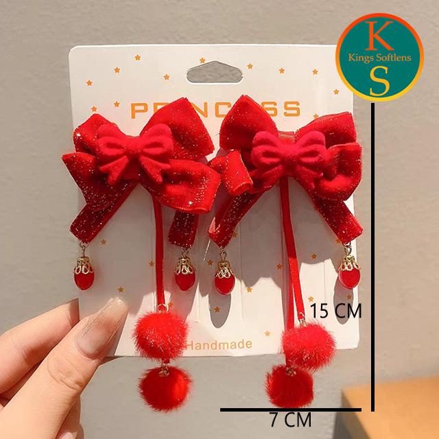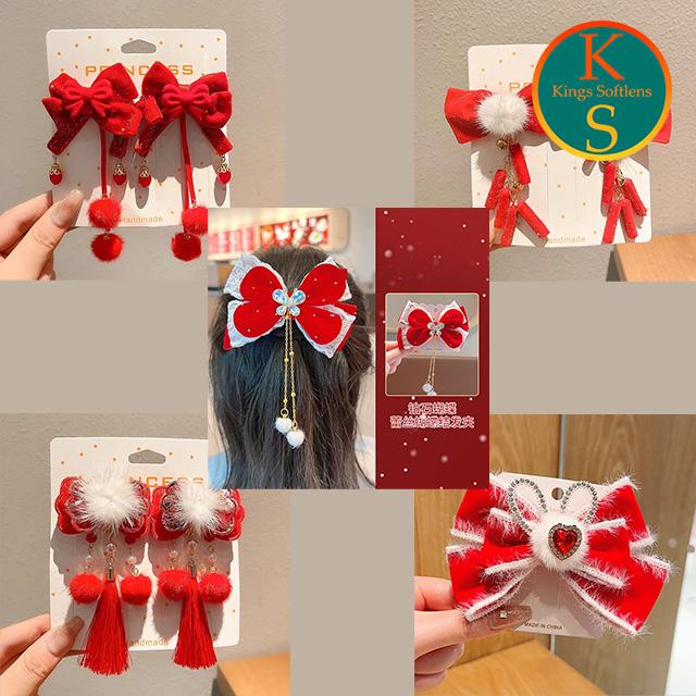 [] ORI 100% Jepit Rambut Pita Merah Imlek Motif Lucu Aksesoris Anak Wanita Tahun Baru Cina