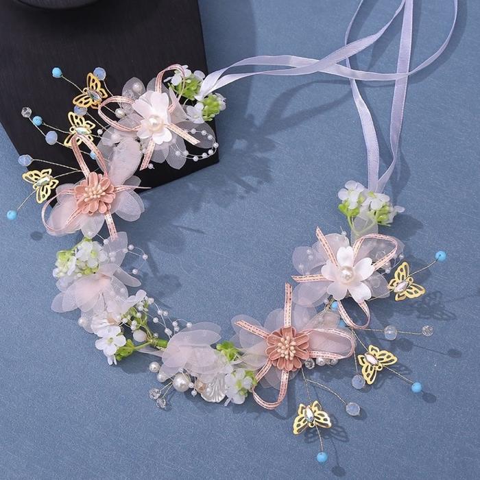 Headpiece Mutiara Bunga Korea Flower Crown Wanita Bridal Tiara Mahkota Peri Super Daun Karangan Bando Rambut Pengantin