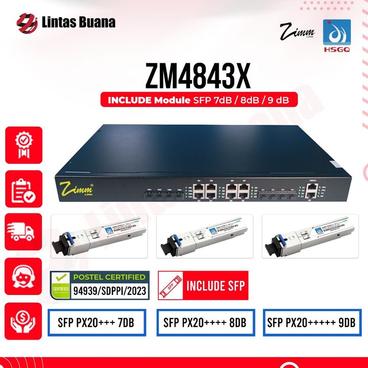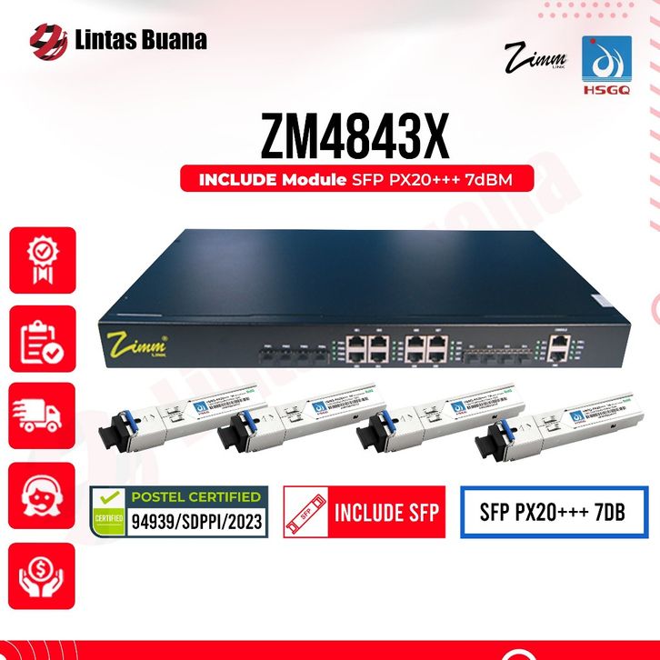 Zimmlink OLT EPON ZM4843X 4PON port, L3, FREE SPF EPON Module Transceiver HSGQ