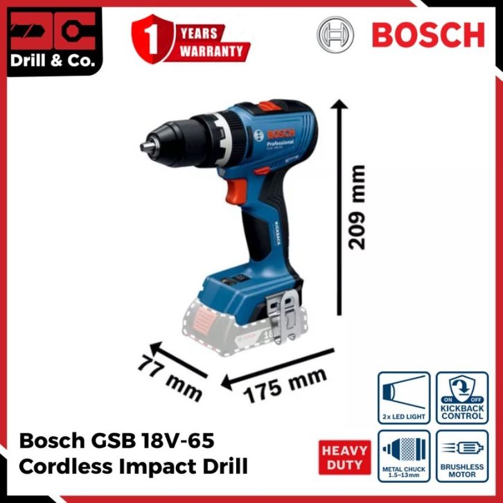 Bosch GSB 18V-65 Cordless Brushless Impact Drill / Mesin Bor Baterai