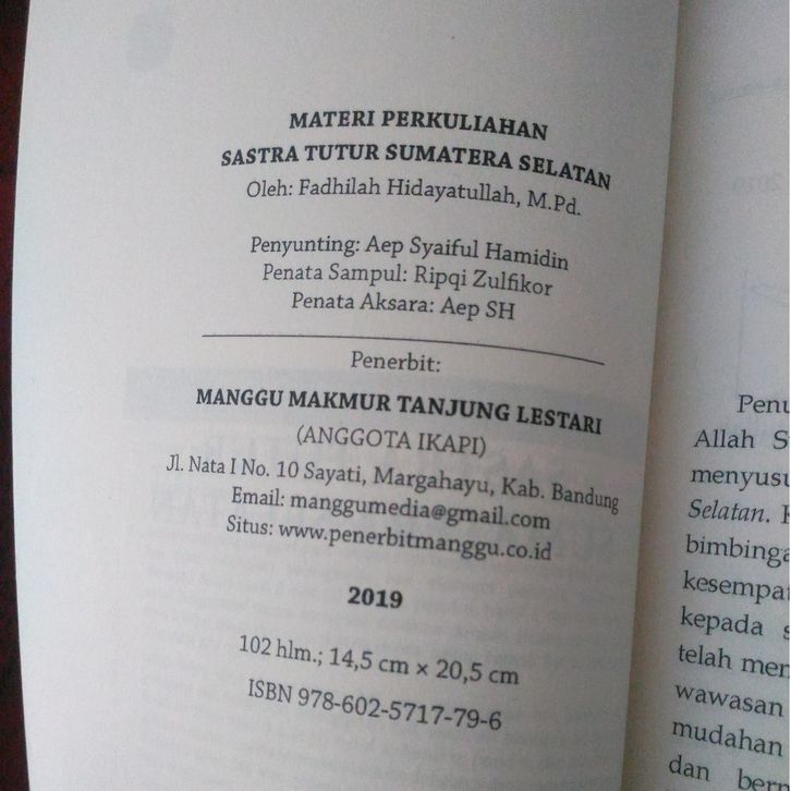 buku sastra novel Sastra Tutur Sumatera Selatan Fadhilah Hidayatullah