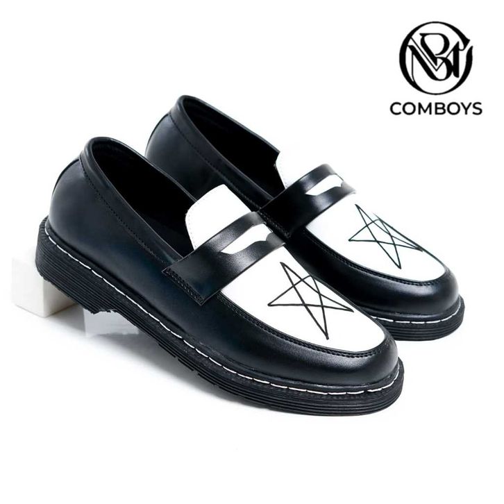 Promo Sepatu Kulit Pria Sepatu Pria Formal Loafers Docmart Comboys Black Kulit Pu Pantofel Kerja Kantoran 01