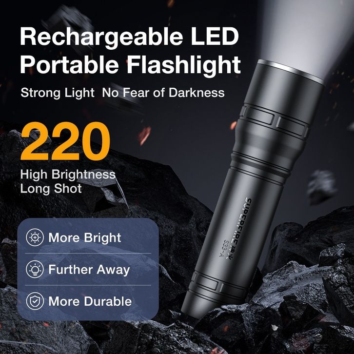 Flashvoy&Superfire L11 Senter LED Super Terang Tahan Lama Type C Rechargeable Portable Jarak Jauh SOS Flashlight