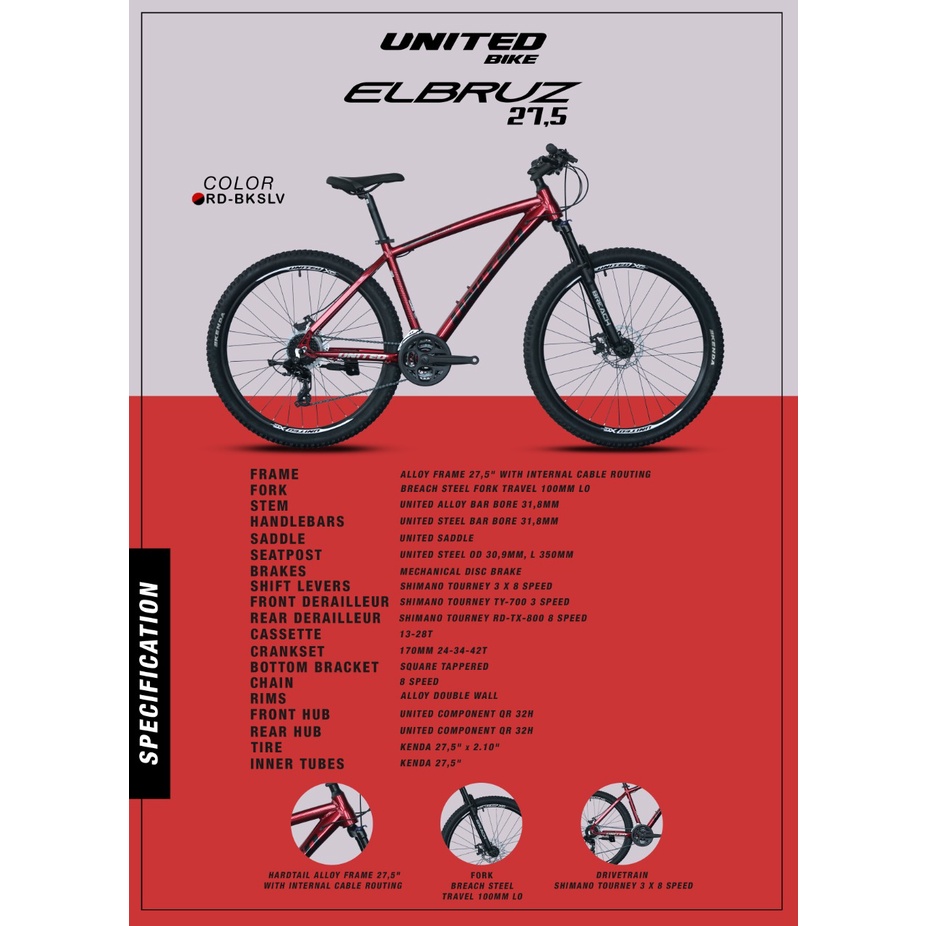 Sepeda Gunung MTB 27.5 Elbruz by United Bike original garansi