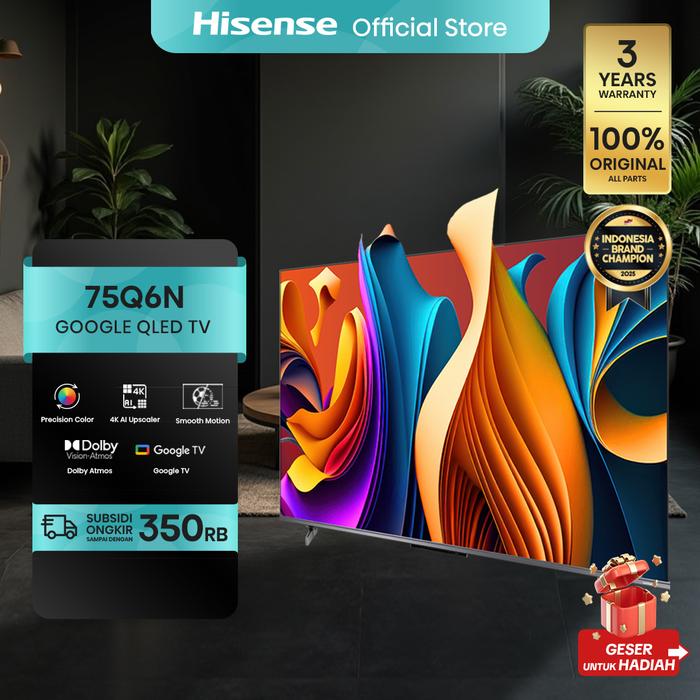 FLASH SALE HISENSE SMART TV GOOGLE 75Q6N MODEL LAYAR 75 INCH 4K HDR LED WARNA QUANTUM DOT ARRAY PENUH LANGSUNG KEDALAMAN ADAPTIF AI PIKSEL TUNING DOLBY ATMOS&VISON SENSOR CAHAYA ADAPTIFAI IMAGE