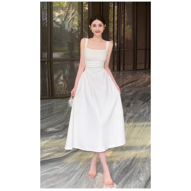 midi dress press body kekinian dress putih panjang tanpa lengan baju dress pesta wanita terbaru dress wanita elegan