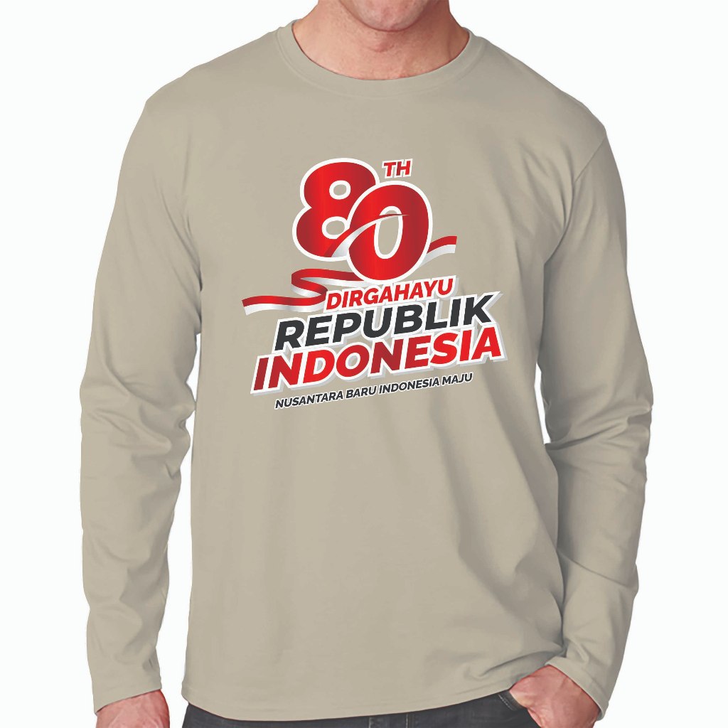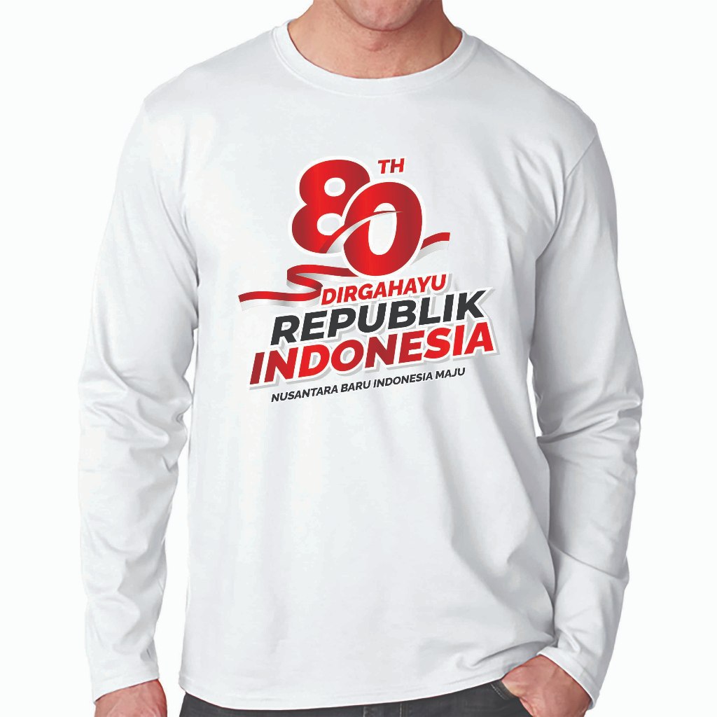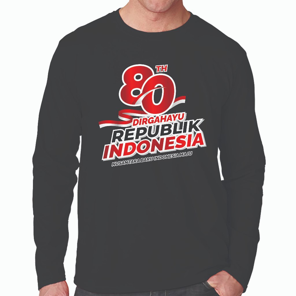 KAOS DISTRO PRIA LENGAN PANJANG, KAOS 17 AGUSTUS 1945 DIRGAHAYU 80