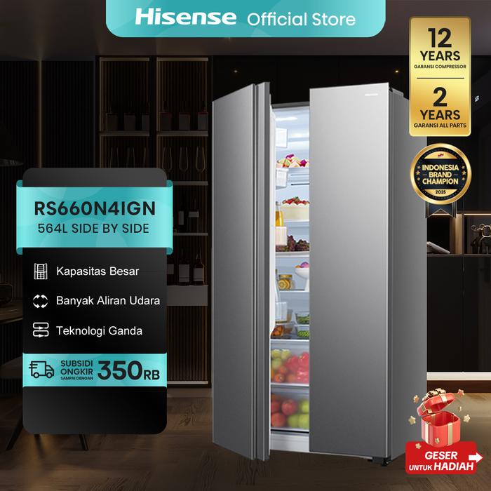FLASH SALE HISENSE 564L KULKAS SIDEBYSIDE REFRIGERATOR SILVERRS660N4IGNLARGE CAPACITYDUAL TECH COOLINGMULTI AIR FLOWTOTAL NO FROSTSUPER FREEZEELECTROONIC CONTROL