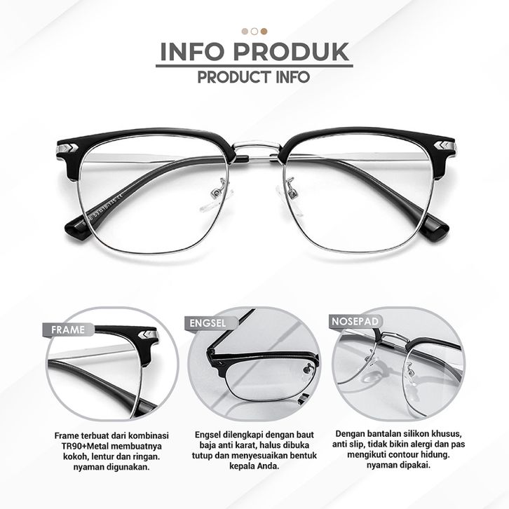 Frame Kacamata Minus/Normal Anti Radiasi Photocromic Blueray Bluecromic Metal+TR-90 Kotak Unisex Terbaru