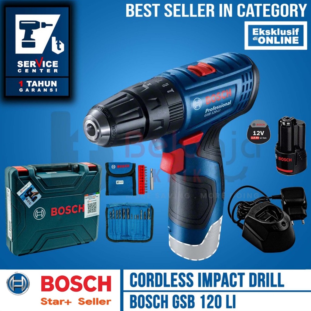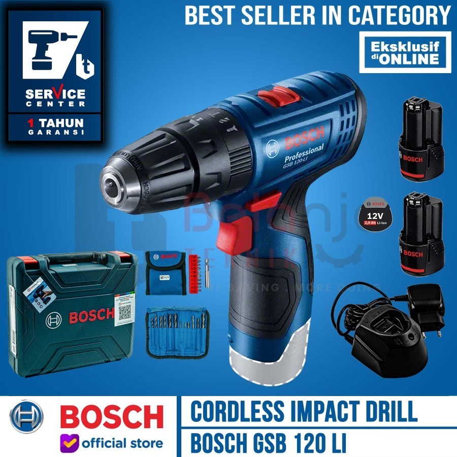Bosch Bor Baterai Tembok Cordless GSB 120-LI GEN 3 SET 1 Baterai 2 AH FREE Mata Bor Obeng