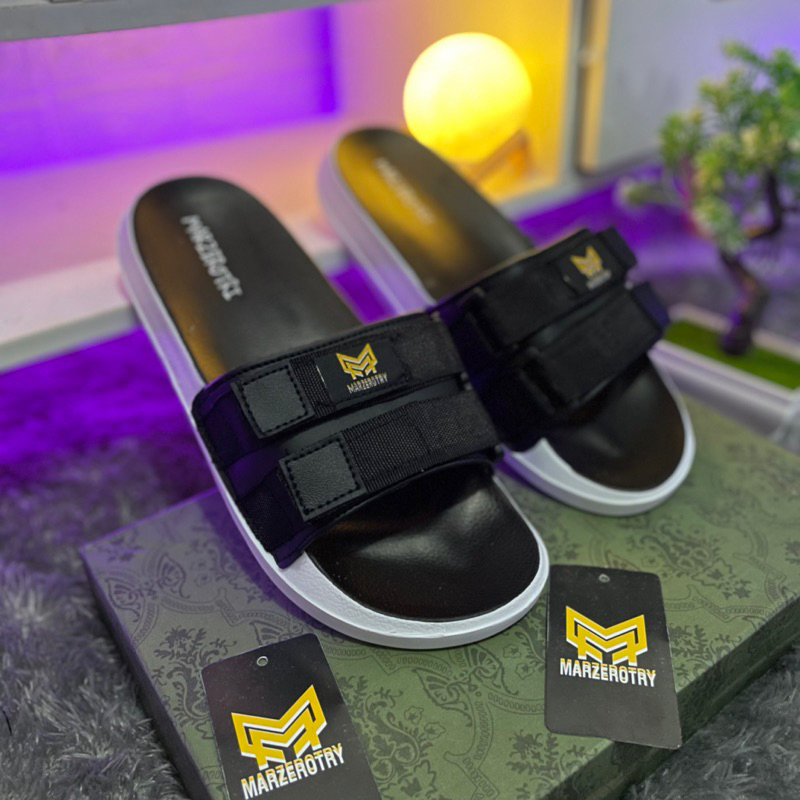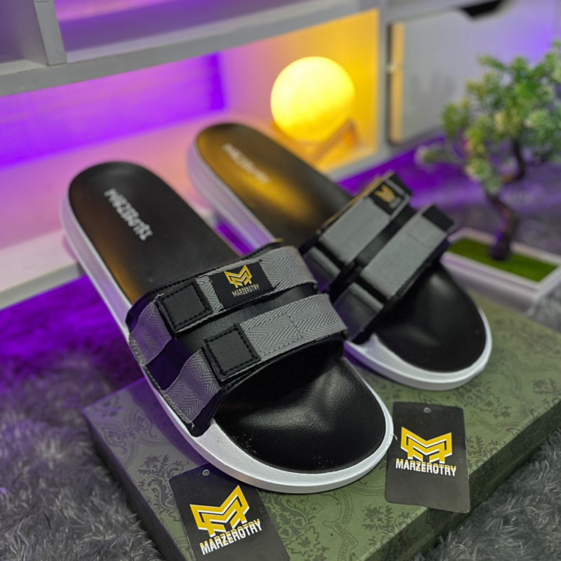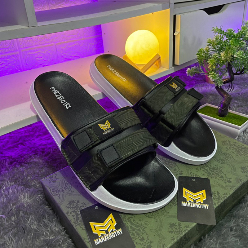 marzerotry~ 01 Sandal Pria Distro Casual Black GRAY Sandal Slide Pria dan Wanita Anti Licin Free Paperbag