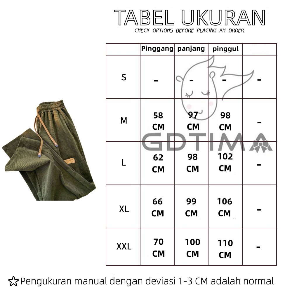 GDTima Celana Wanita Corduroy Pants Pinggang Elastis High Waist