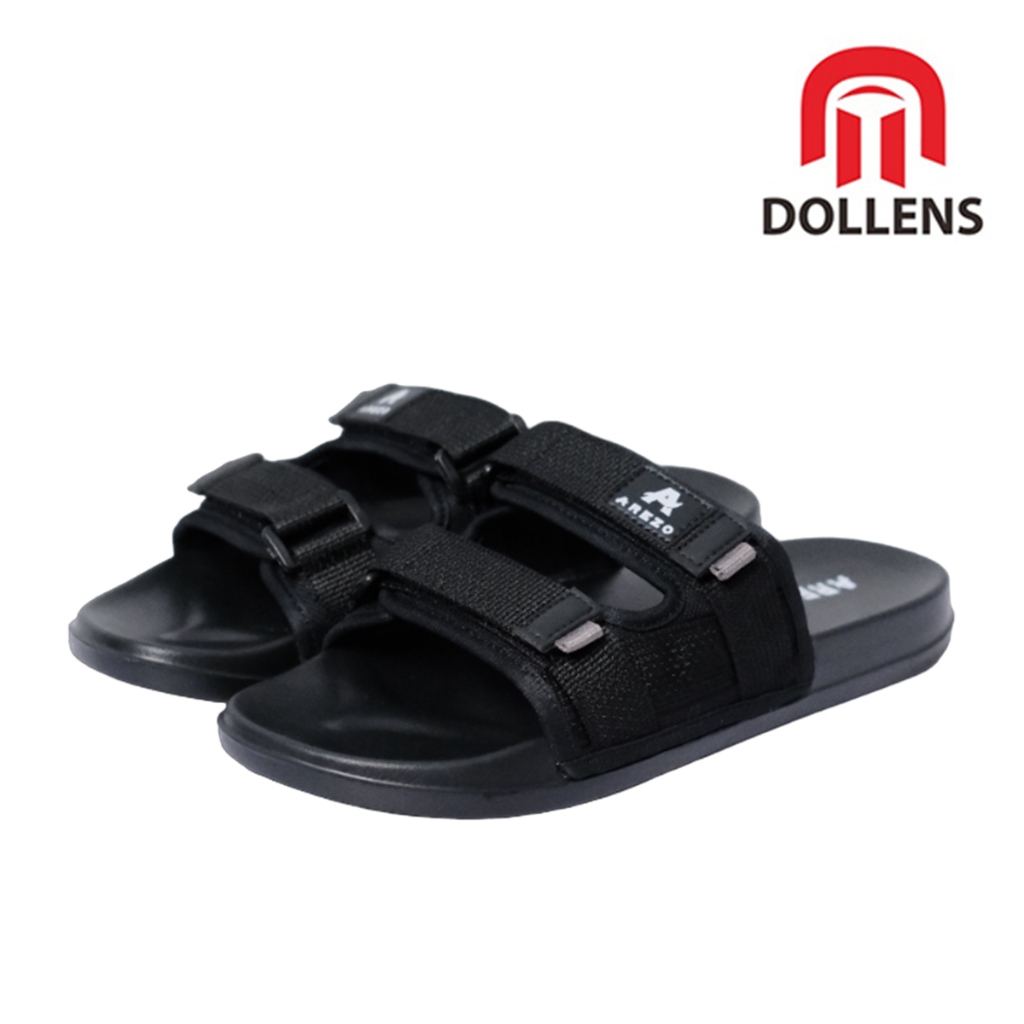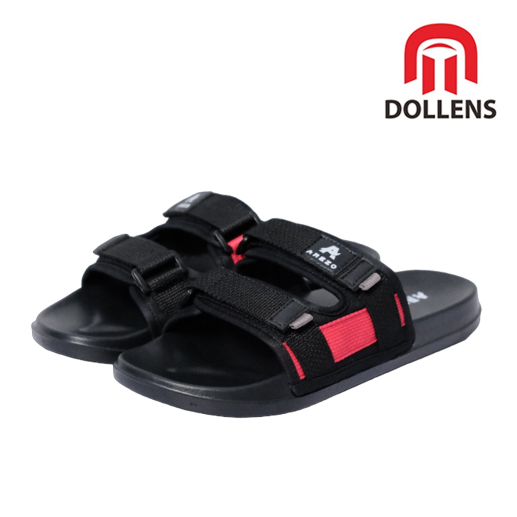 Sandal Slop Pria Distro Strap Aesthetic Arezo - Hitam/Abu-abu/Merah