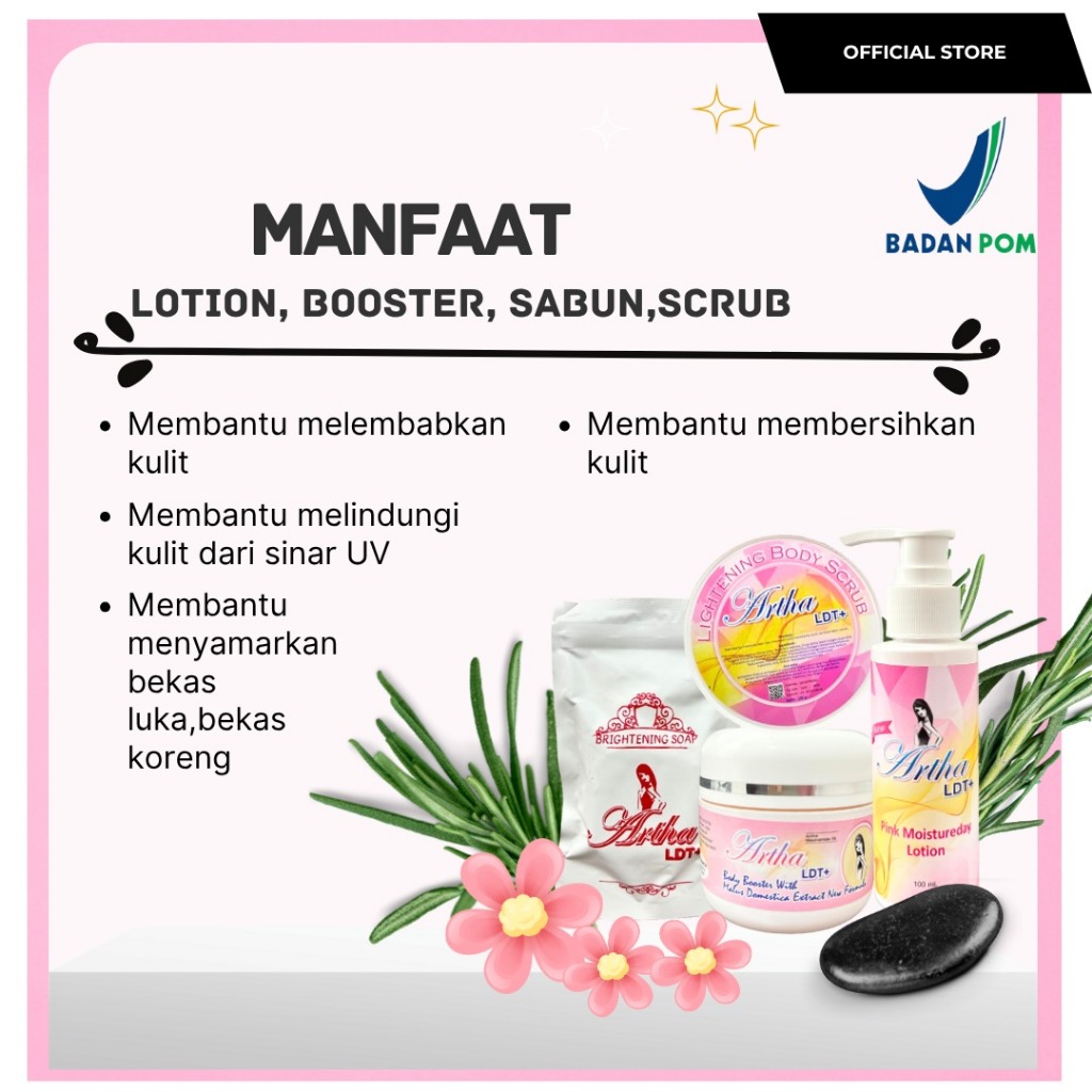 ARTHA LDT + - Paket Bodycare [ Pink Moistureday Lotion, Booster Scrub Sabun] new packaging