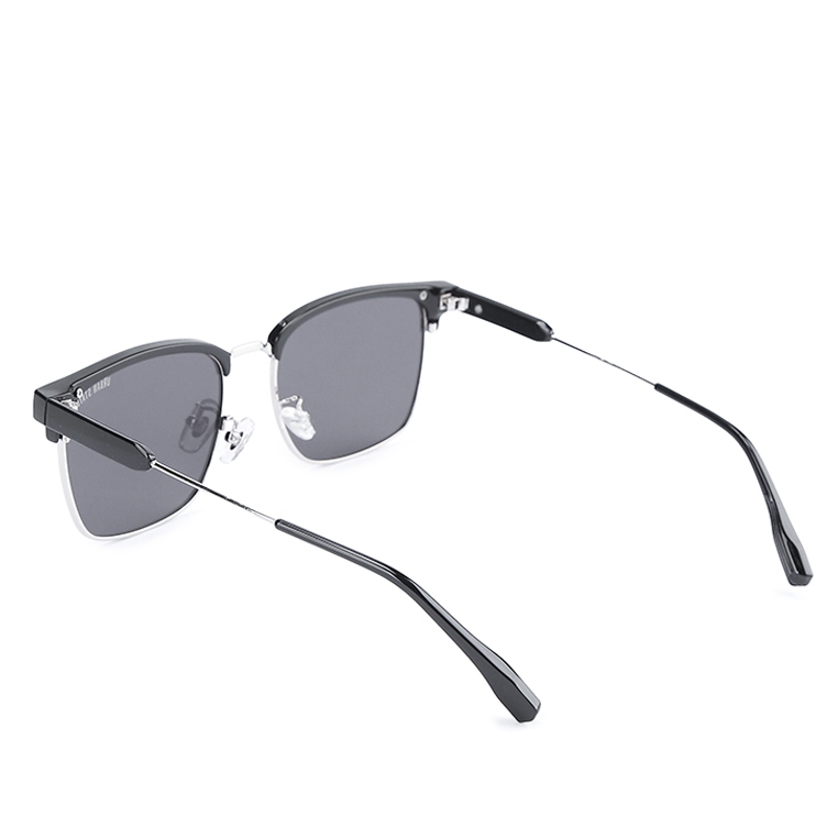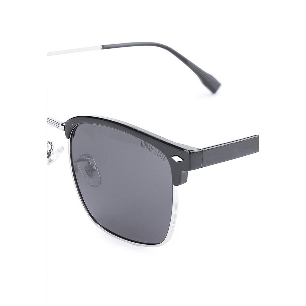 URBAN STATE - POLARIZED STAINLESS FRAME CLUBMASTER SQUARE SUNGLASSES - BLACK BLACK