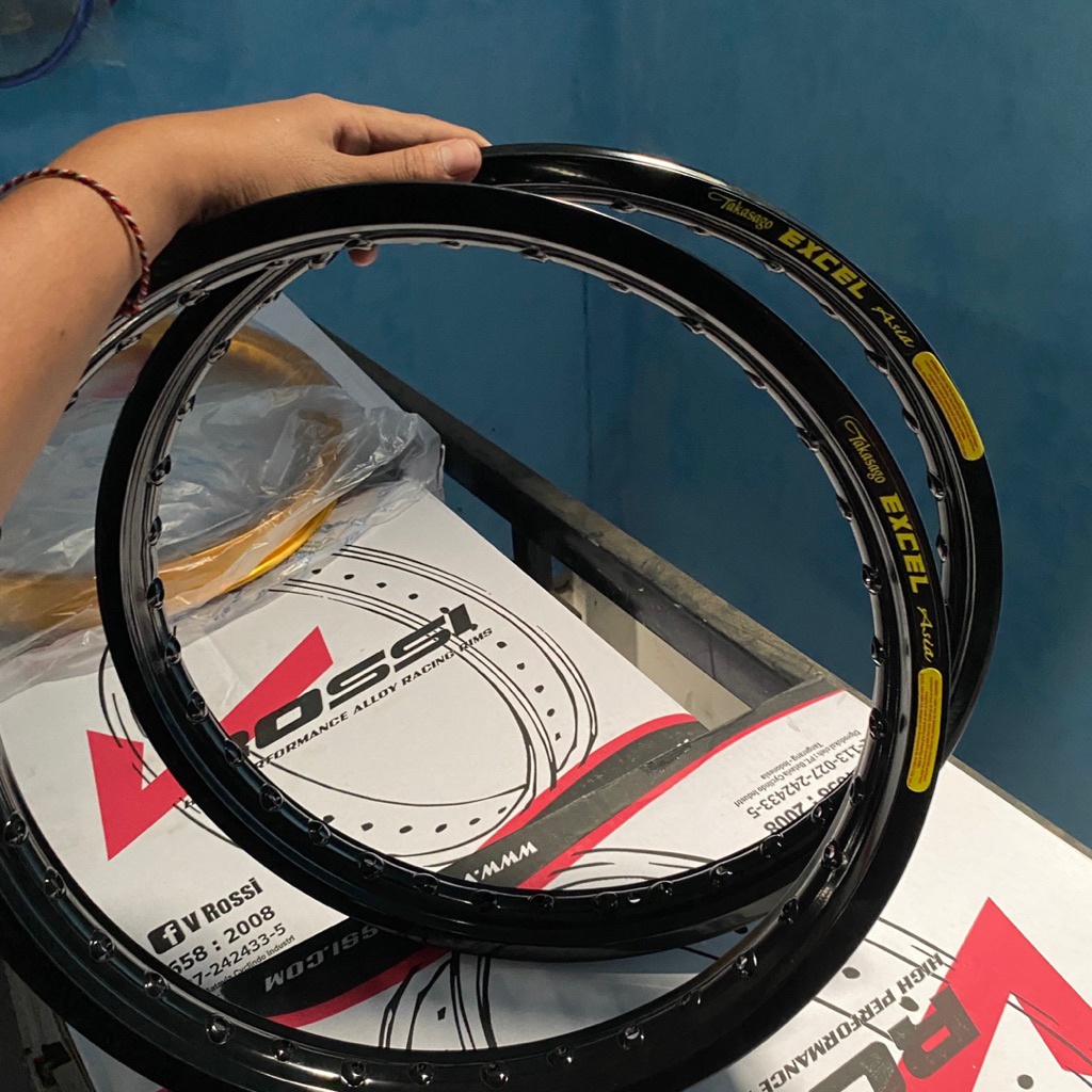 (READYYY) Velg V rossi sudah custom stiker takasago excel asia ring 17 dan 18 (Hitam Glossy)