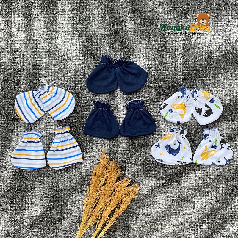 Nanaku Baby - Isi 3 Pcs Sarung Tangan & Sarung Kaki Series Paus Navy / Sartaki Baby Newborn Usia 0-3 Bulan
