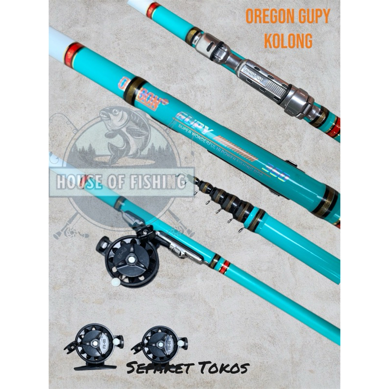 Joran Tegek Kolong Oregon Gupy Reel Seat Set Tokos Fiber Panjang 180cm-450cm | Joran Tegek Set | Pancingan Set Lengkap