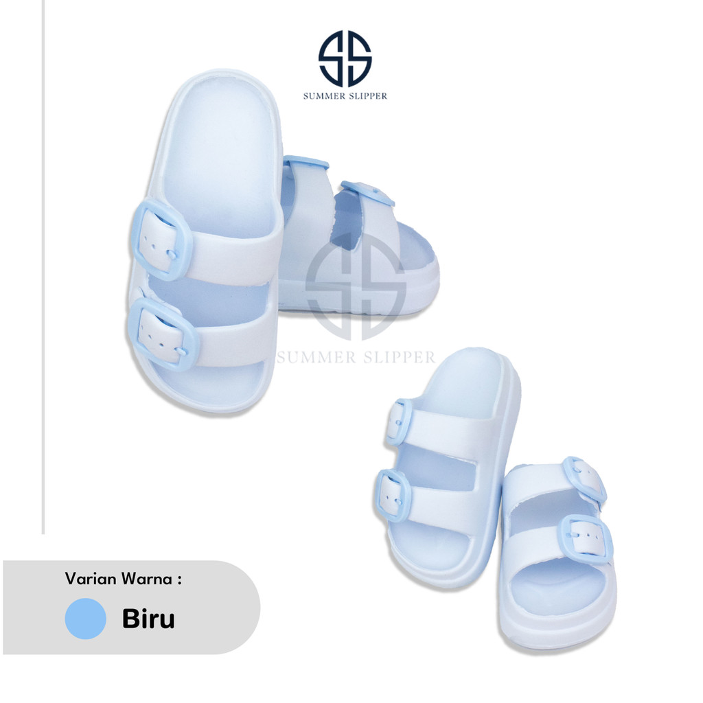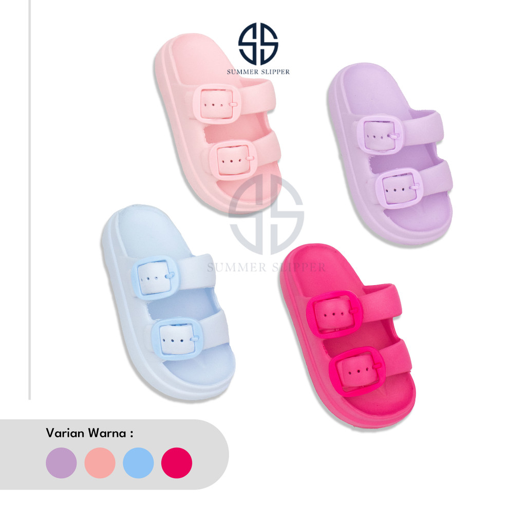 SS Sandal Wedges Anak Perempuan Sendal Cewek Double Slop Ban Aksen Belt Adjustable Anti Slip Bahan EVA