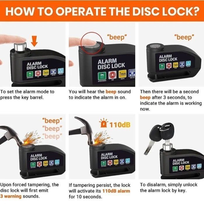 GROSIR Gembok Motor Cakram Anti Maling Alarm Disc Lock Kunci Rem Kuat Kokoh Baja Universal RUNGKUT JAYA MAKMUR