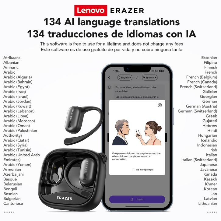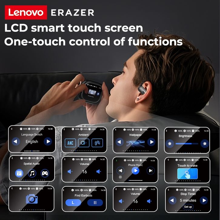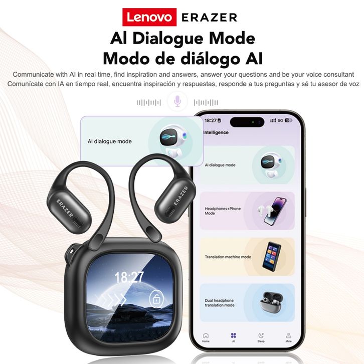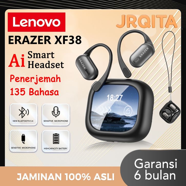 Lenovo XF38 eraphone Terjemahan AI Real-time Headset Terjemahan AI OWSHeadphone Nirkabel Bluetooth V5.4 Kontrol Layar H