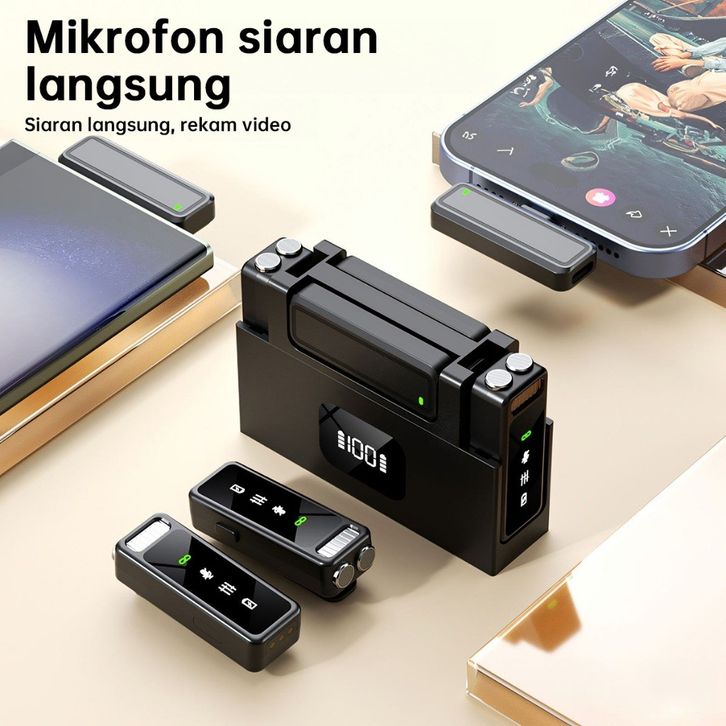 NEW COMINGjqvitek LM24 Lavalier Microphone Wireless Dual Koneksi Type C & iOS Mikrofon Clip On Mic HP Plug & Play Dual