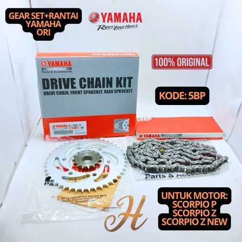 GEAR SET+RANTAI YAMAHA 5BP GARANSI SCORPIO P SCORPIO Z SCORPIO Z NEW 100% ASLI ORIGINAL YAMAHA
